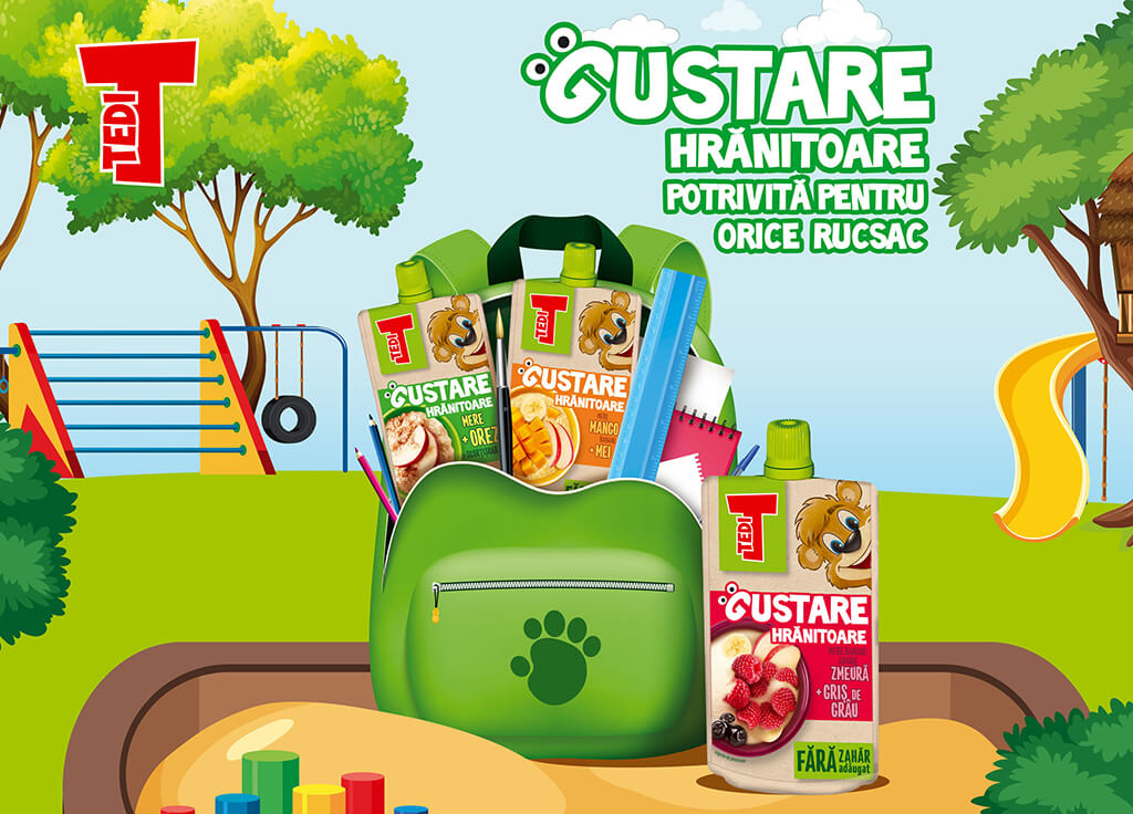 Tedi isi mareste portofoliul de produse cu noua gama Tedi Gustare Hranitoare 100g: amestec de fructe si cereale, consistent, satios, nutritiv, perfect ca si gustare la scoala.